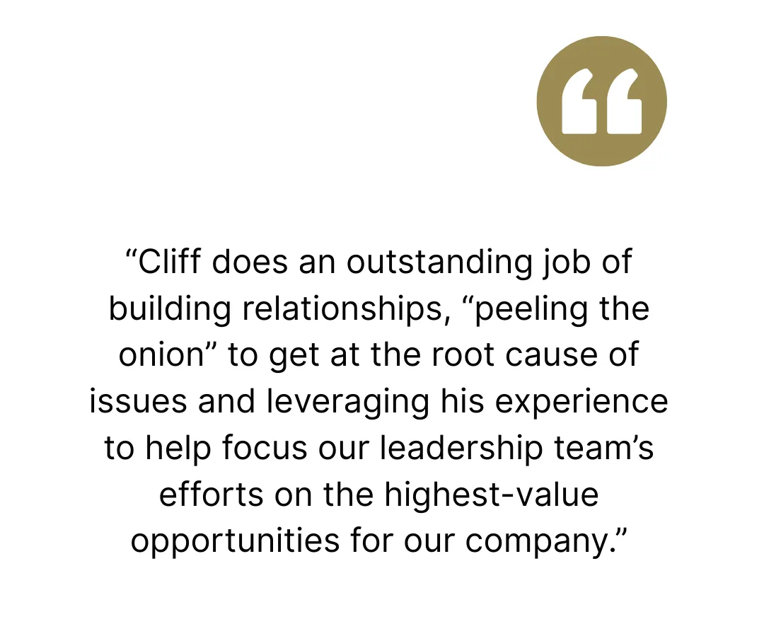 This isn’t generic coaching. I’ve built and sold multiple companies and advised leaders at global brands, so I bring operating experience and capital markets insight to the table. We often focus on decisions that actually move the needle—like spotting opportunities others miss or structuring a deal that accelerates growth.